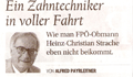 Der ORF bot am 8. Februar im ORF H.C. Strache eine ideale Bühne für seine Polemik. "Um Straches Argumente zu zerpflücken, würde es eine längere Sendezeit oder eine andere Sendeform brauchen", meint dazu Alfred Payrleiter im Kurier vom 9. Feb. Der renommierte Kurier-Kolumnist trifft damit meiner Ansicht nach voll den Nagel auf den Kopf. Lesen Sie hier den gesamten Kommentar: