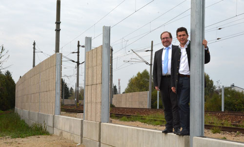 Erste Etappe des Bahn-Lärmschutzes im Langenlebarnerviertel kurz vor der Fertigstellung